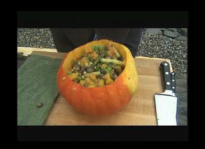 - 2 cups raw pumpkin or winter squash, cubed (reserve pumpkin shell for serving)