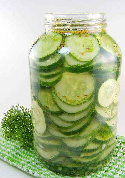 - Pour hot liquid and over cucumbers and onions, toss well, and let cool. The cucumbers will give off some of their juices; keep them submerged in the liquid while they cool.